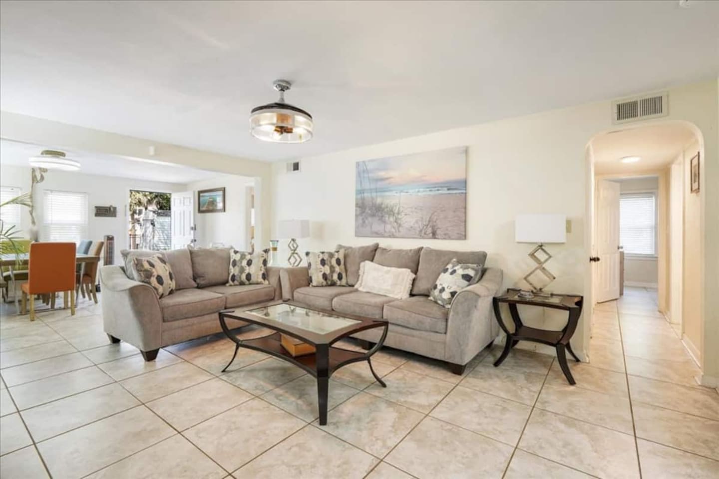 Just a 5-minute walk to the beach, this bedroom with a shared bathroom in a spacious 4BR/2BA home is perfect for your Daytona getaway! Walk to the pier, Daytona Lagoon waterpark, shops, and restaurants. Enjoy the sunrise on beach cruisers—3 bikes, 2 boogie boards, beach toys, towels, and chairs are all included for your stay. Whether you’re here to surf, relax, or explore, this breezy beach retreat has everything you need for fun in the sun.