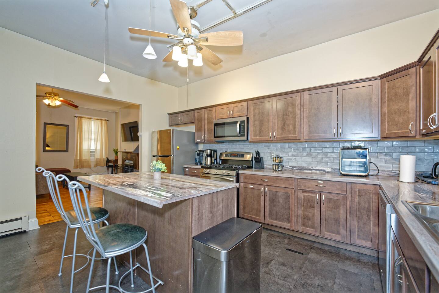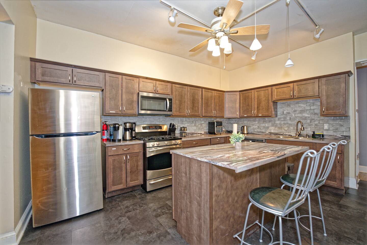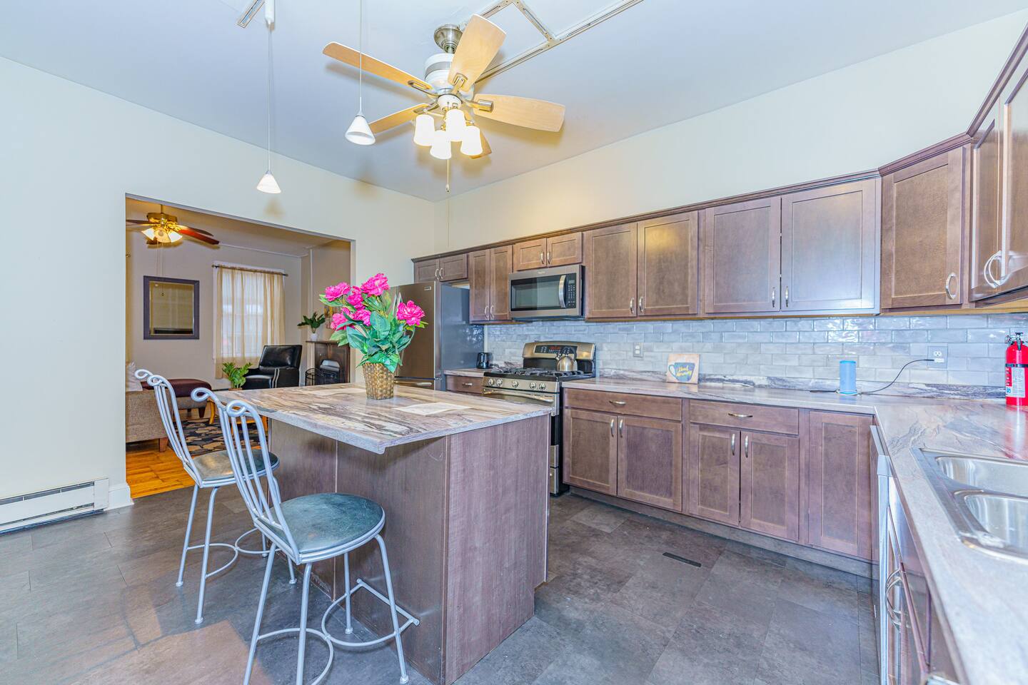 + The 55" 4K HDTV in the living room and 40" 1080p HDTV in the bedrooms have Roku with Netflix, Hulu, Disney+, Paramount+, Amazon Prime Video, and many streaming channels included! + High-speed Wi-Fi included (Of course!) + Full kitchen appliances, iron/ironing board and hair dryer + Water filter pitcher and/or faucet provided. Please filter all tap water used for drinking or cooking. + Help yourself to food in the kitchen and toiletries in the bathroom as needed, but please be mindful of future guests. Thanks and welcome!