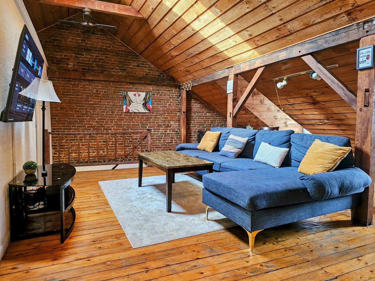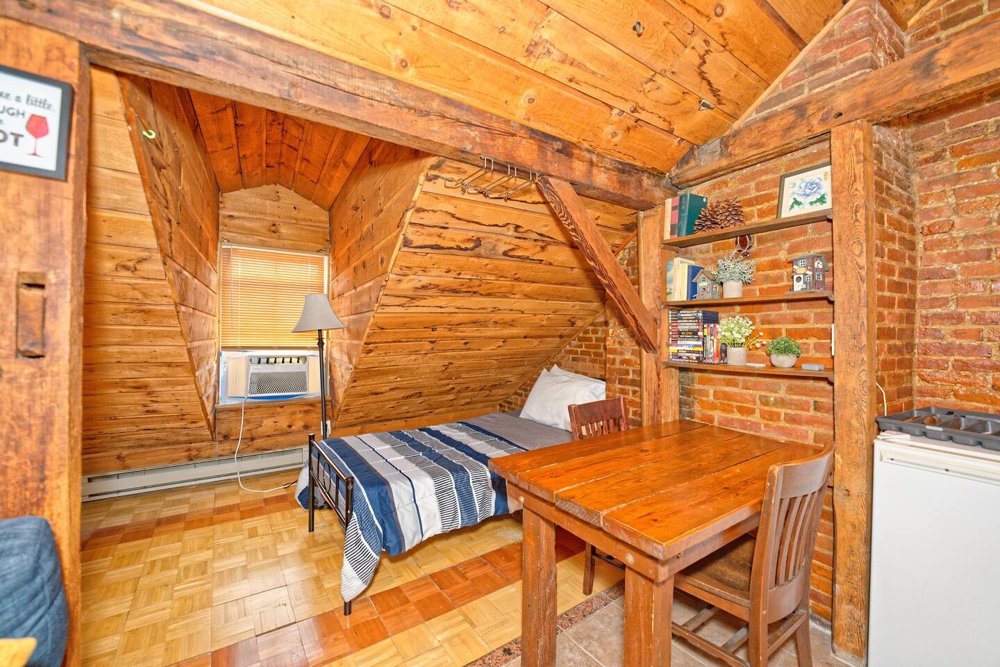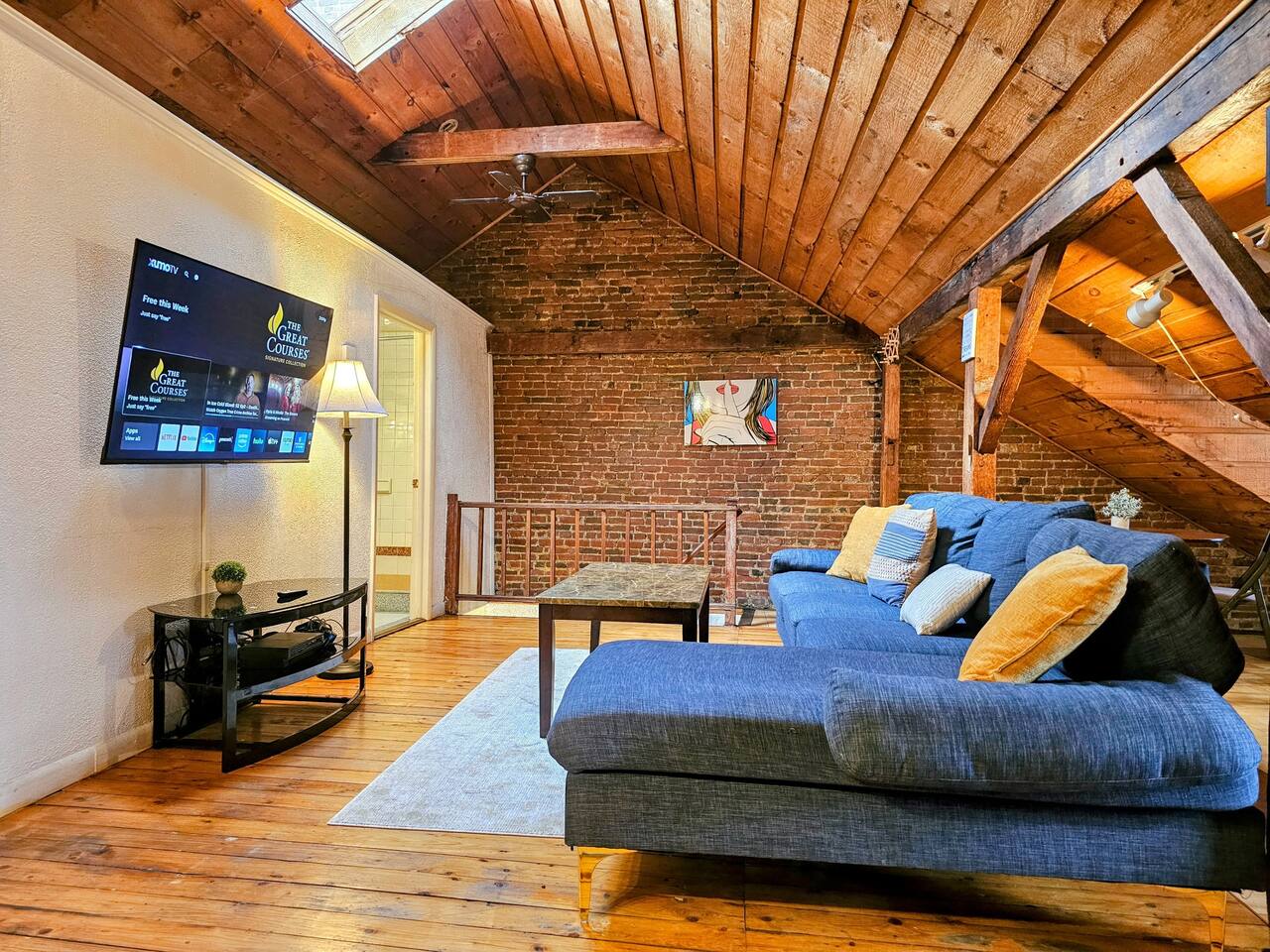 + Beautiful Loft suite on the entire 3rd floor attic + Exposed brick and hardwood + Full kitchen and dining area + Private bathroom with toiletries provided + Memory foam double bed in bedroom sleeps 2 + Twin bed in living room with 2" foam topper for added comfort sleeps 1 + Queen airbed stored in bedroom closet sleeps 2 + Rainfall shower head + Has partial wall for bedroom section, full wall to isolate bathroom, and kitchenette in living area + Large sectional couch w/ 55" 4K Xumo TV + 32" HDTV with Roku in bedroom + Enjoy your privacy in this "cabin-in-the-woods" in a quiet neighborhood! + Separate entrance in hallway + Kitchenette has induction cooktop, refrigerator, microwave, fruit blender and small toaster oven + Wireless printing station in building hallway + Laundry in building hallway + Access to a fenced backyard + Located in building designated as federal historic landmark -- NO SMOKING OR BURNING ON PROPERTY. ALL MARIJUANA AND CIGARETTE SMOKING ON-SITE BANNED. NO INCENSE ALLOWED. ABSOLUTELY NO EXCEPTIONS. -- NO PARTIES -- PLEASE RESPECT YOUR NEIGHBORS