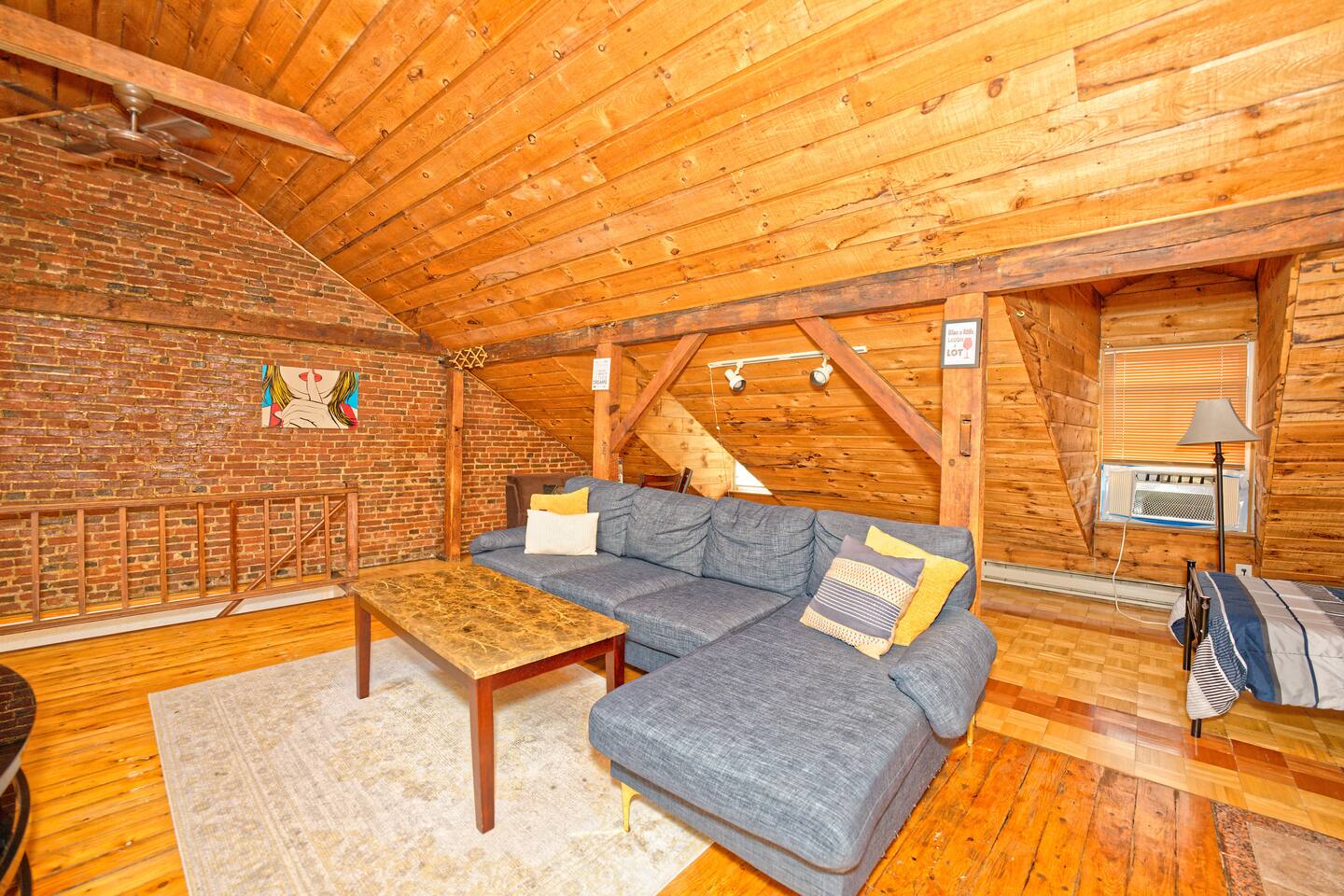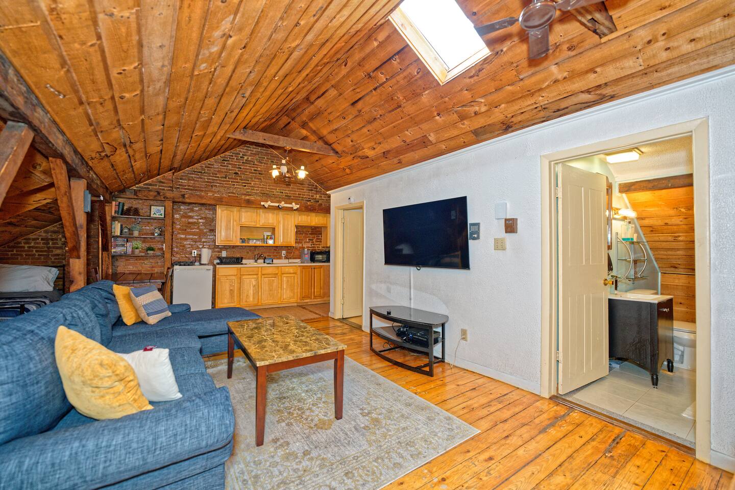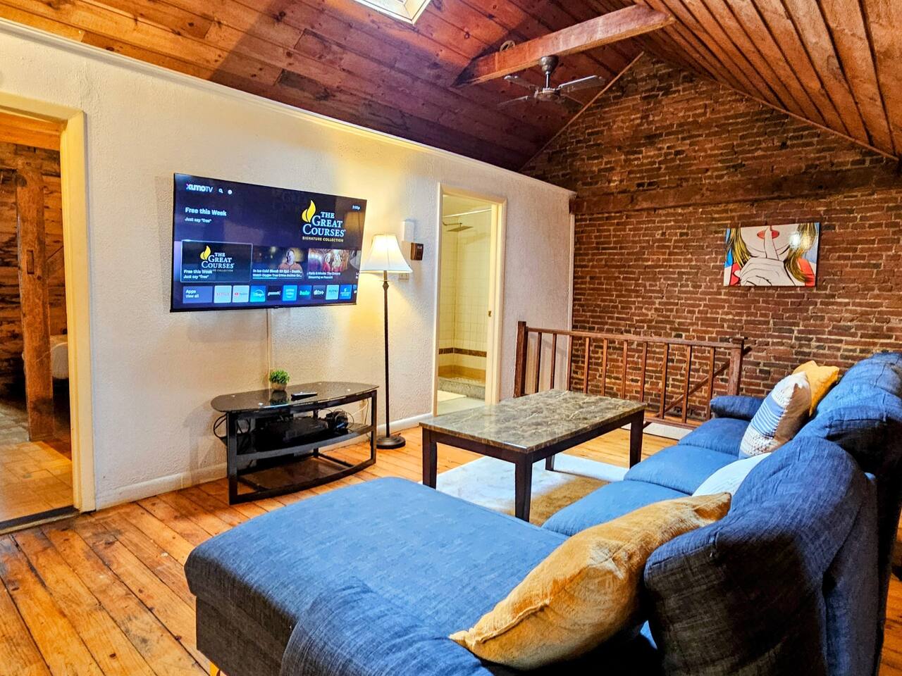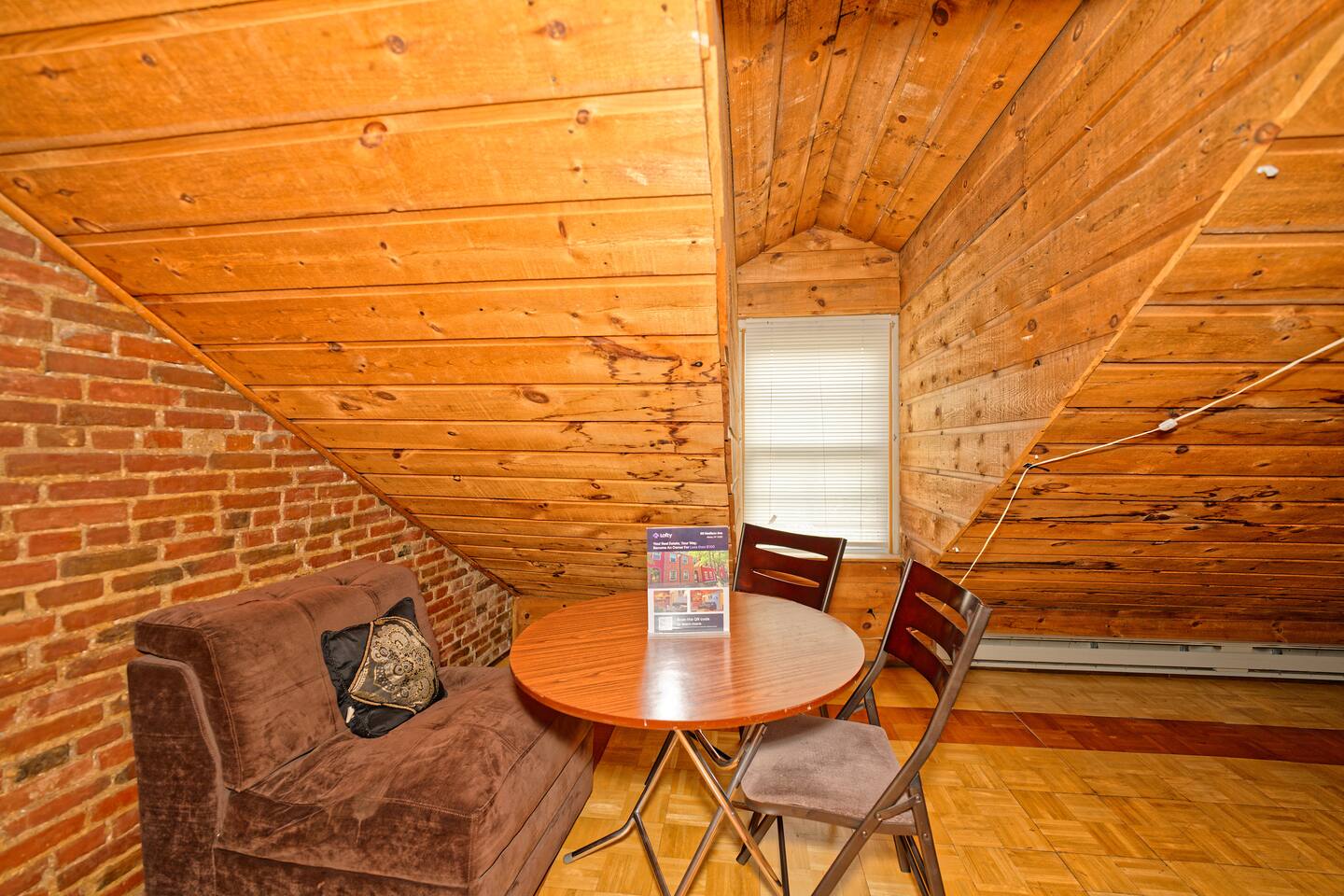 + Beautiful Loft suite on the entire 3rd floor attic + Exposed brick and hardwood + Full kitchen and dining area + Private bathroom with toiletries provided + Memory foam double bed in bedroom sleeps 2 + Twin bed in living room with 2" foam topper for added comfort sleeps 1 + Queen airbed stored in bedroom closet sleeps 2 + Rainfall shower head + Has partial wall for bedroom section, full wall to isolate bathroom, and kitchenette in living area + Large sectional couch w/ 55" 4K Xumo TV + 32" HDTV with Roku in bedroom + Enjoy your privacy in this "cabin-in-the-woods" in a quiet neighborhood! + Separate entrance in hallway + Kitchenette has induction cooktop, refrigerator, microwave, fruit blender and small toaster oven + Wireless printing station in building hallway + Laundry in building hallway + Access to a fenced backyard + Located in building designated as federal historic landmark -- NO SMOKING OR BURNING ON PROPERTY. ALL MARIJUANA AND CIGARETTE SMOKING ON-SITE BANNED. NO INCENSE ALLOWED. ABSOLUTELY NO EXCEPTIONS. -- NO PARTIES -- PLEASE RESPECT YOUR NEIGHBORS