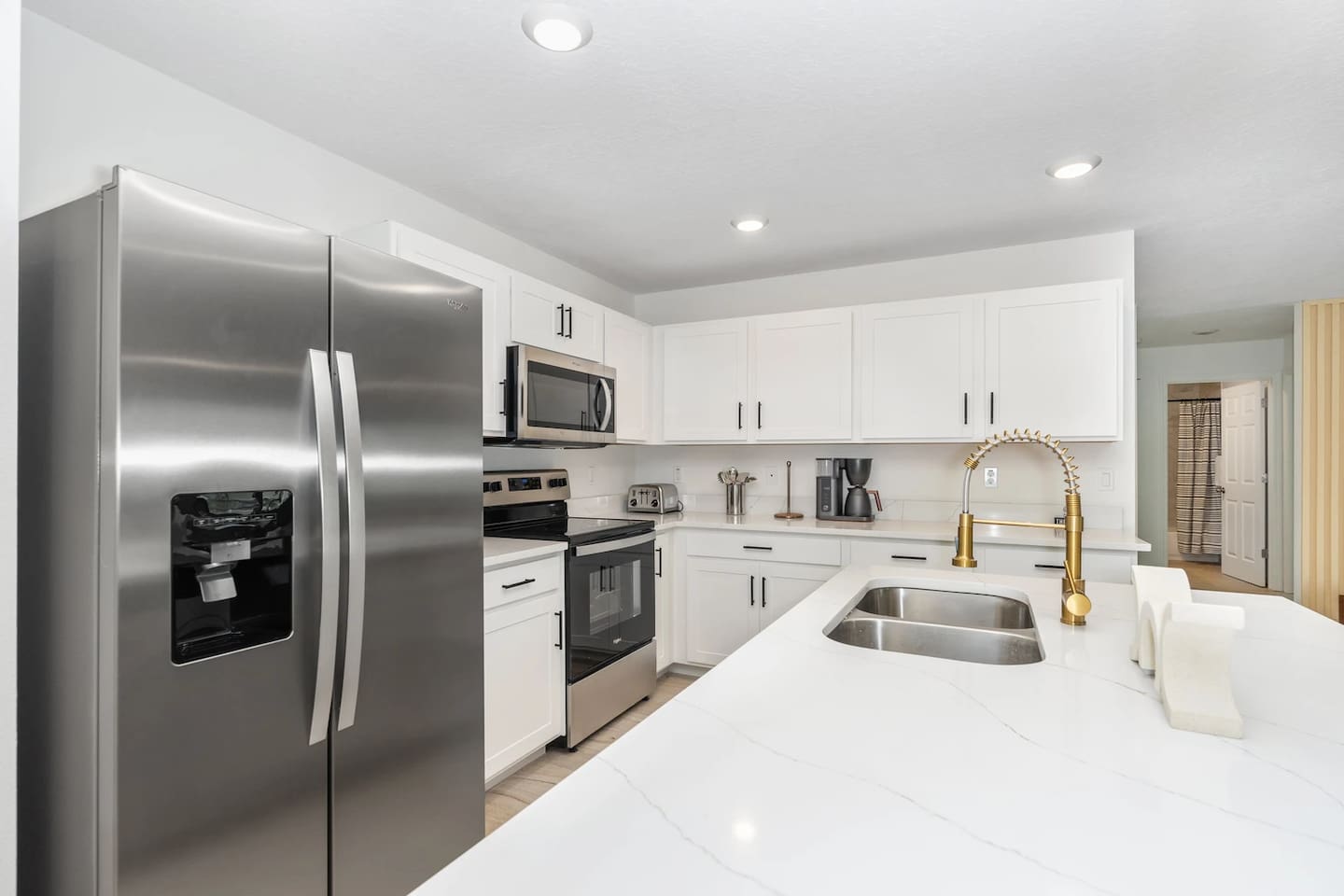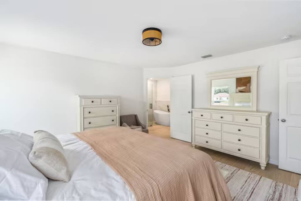 Spacious, stylish, and perfectly located in Palm Coast! This 5BR/2BA home features a dedicated office converted into an extra sleep space, ideal for families, groups, or work-from-anywhere stays. Enjoy an open layout, comfortable beds, and a quiet neighborhood close to beaches, golf, shopping, and dining. Clean, private, and designed for relaxation or productivity, your perfect Florida stay starts here!